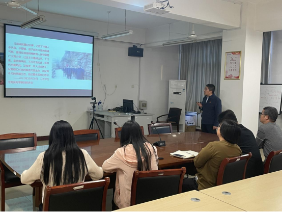 党总支书记王伟以“深入学习贯彻党的二十大精神和习近平总书记考察安阳时的重要讲话精神 以红旗渠精神铸魂育人”为主题,给教师党员上党课;教工党支部组织党员干部下层一线,开展志愿服务活动;教工、员工党支部联合开展“重走习近平总书记考察红旗渠路线,与时俱进弘扬红旗渠精神”主题党日活动。
