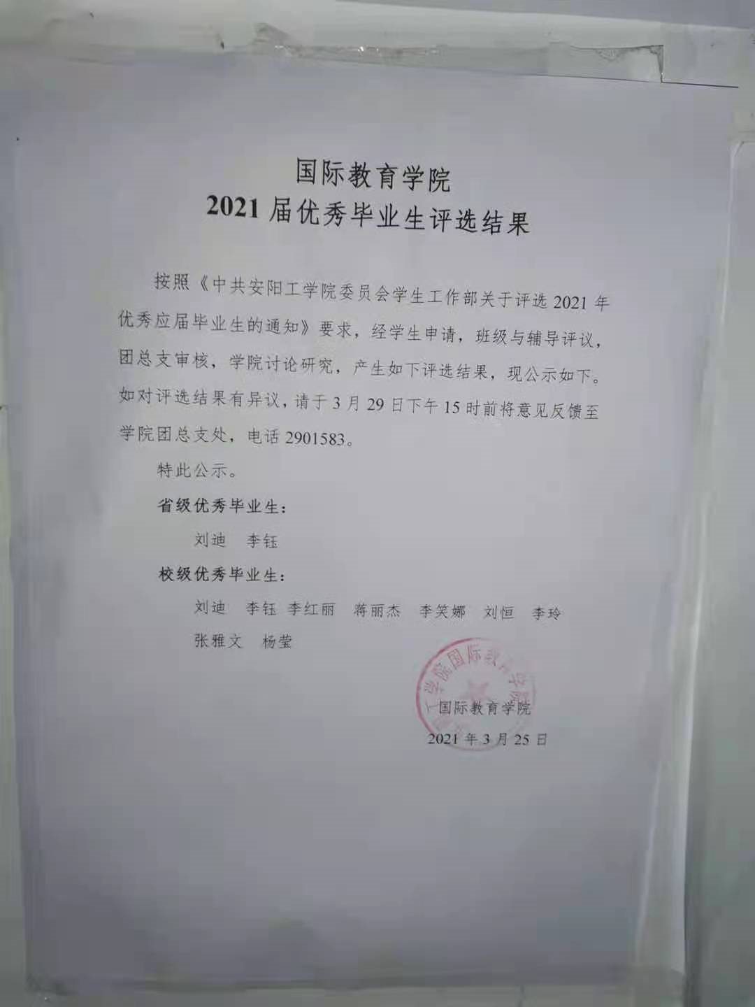 公司2021届优秀毕业生评选结果公示